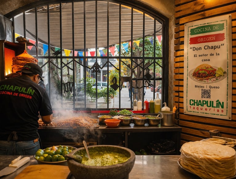 Desde 2025, Chapulin Taquerías trae el auténtico sabor de Jalisco a Santiago, con talento mexicano en cada taco.